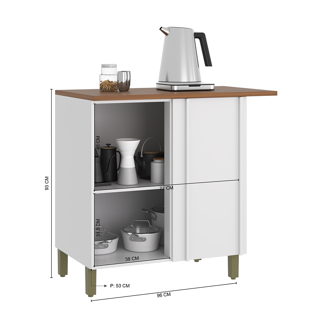 Balcão de Canto Reto 0.96 cm 1 Porta Dimensões: – Largura: 96 cm – Altura: 93 cm – Profundidade: 53 cm