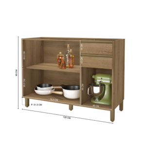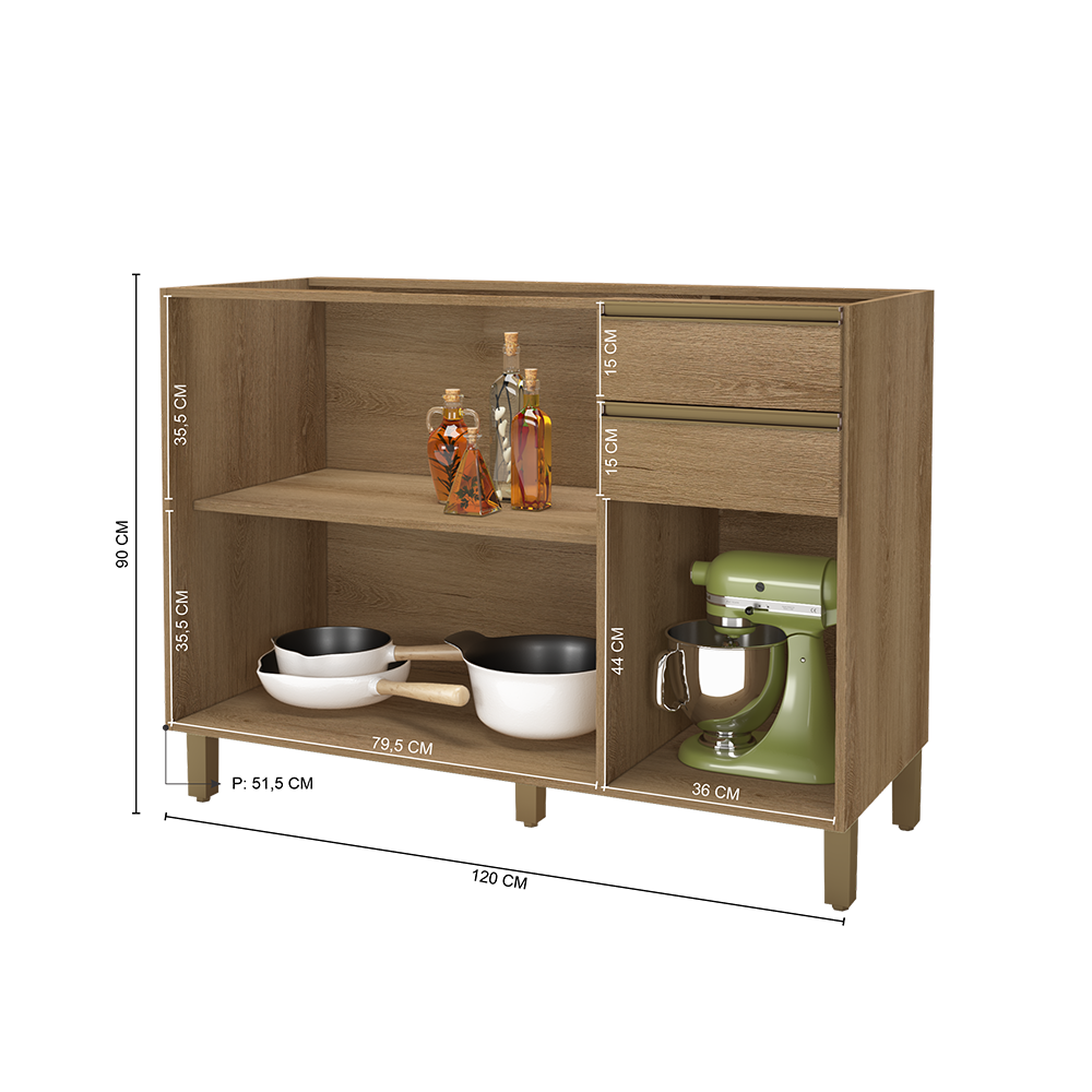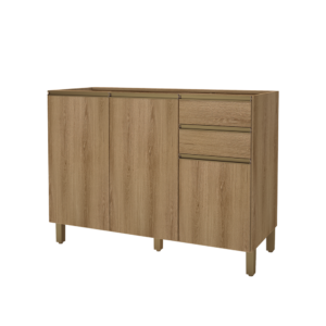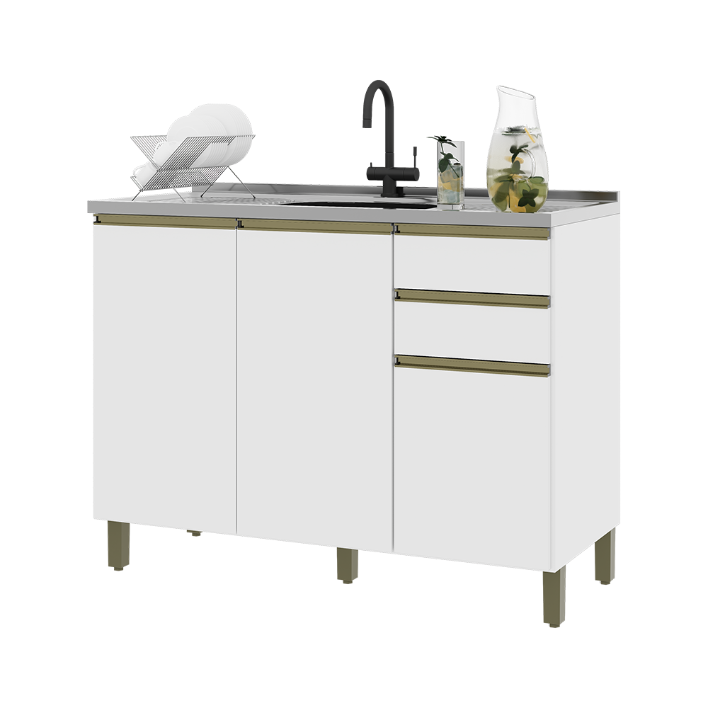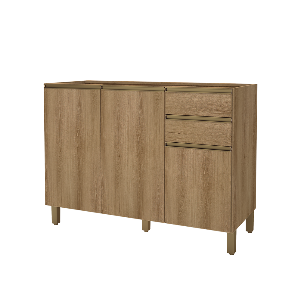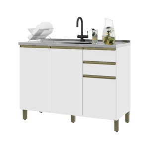 Balcão de 120 cm p/ pia 2 Portas 3 Gavetas Sem tampo Dimensões: – Largura: 120 cm – Altura: 90 cm – Profundidade: 51 cm