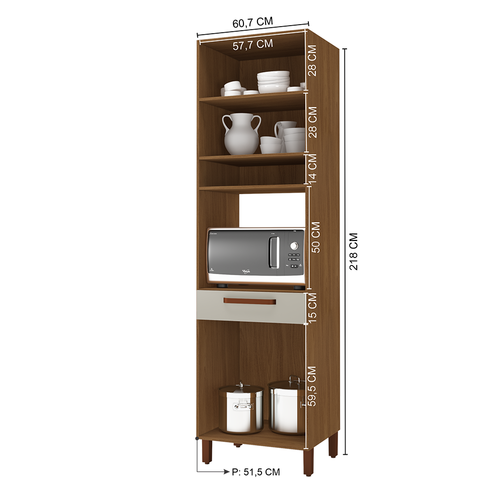 Dimensões: – Largura: 60,7 cm – Altura: 218 cm – Profundidade: 51.5 cm